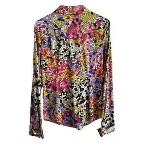 CARMEN MARC VALVO MOSAIC STAINED GLASS BUTTON DOWN SHIRT TOP SZ L
