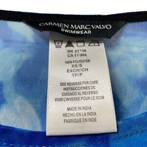 CARMEN MARC VALVO Swim Coverup Size XS/S Flowy Poncho Tunic Blue Floral