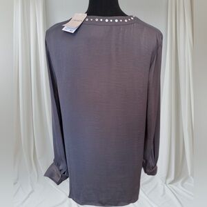CARMEN MARC VALVO V-NECK STUDDED GREY SILKY DRESSY BUSINESS BLOUSE SIZE MED❤️NWT