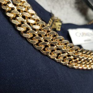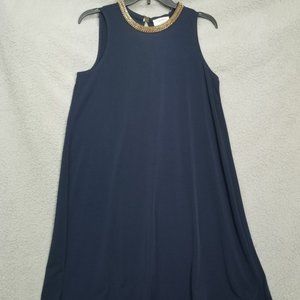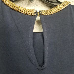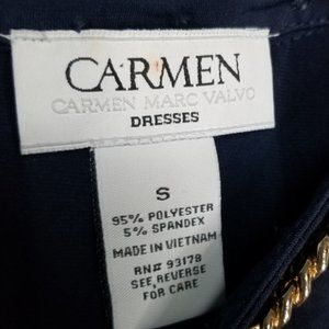 CARMEN MARC VALVO Women's Small Navy Gold Chain Neckline Sleeveless Dress