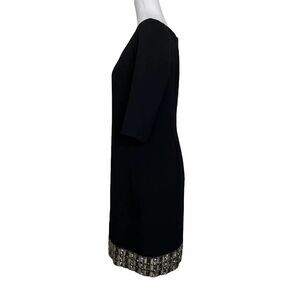 Carmen Marc Valvo Dress Black Gold Metallic Beaded Hem Size 6