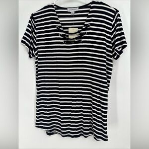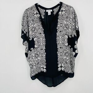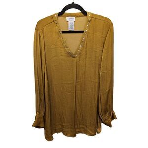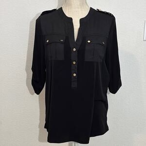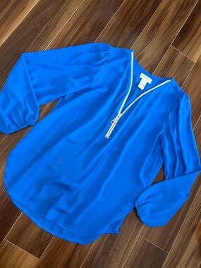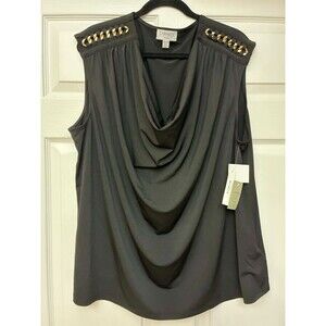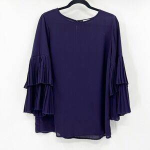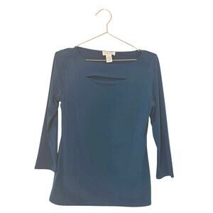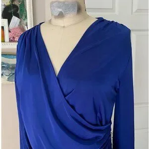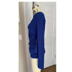 CARMEN Marc Valvo INDIGO Slinky Ruched Zip Side Mock Wrap Blouse Shirt *SMALL*