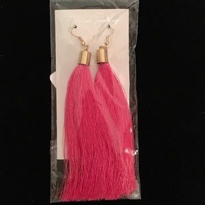 đź’—HOT PINK TASSEL OR FRINGE THREADED EARRINGS. GOLD ACCENTED STATEMENT EARRINGS. THESE ARE FISH HOOK STYLE NOT STUDS OR POST.