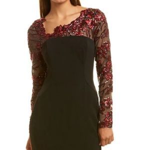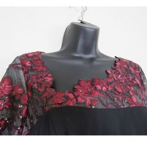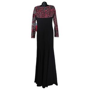 CARMEN MARC VALVO INFUSION Crepe Long Gown Black burgundy 6