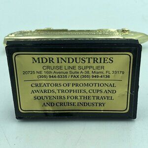Gold Miracle ship on a stick from Carnival Cruise Lines. It is 5 1/2 inches tall and 6 inches long. It is in good used condition.