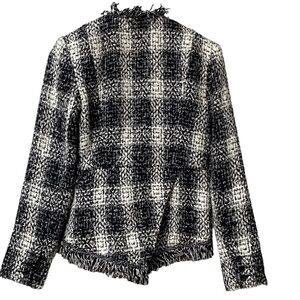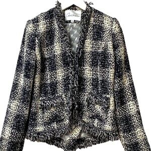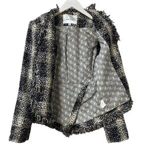 CAROL ANDERSON Tweed Fringe Blazer Size 2 Luxury Jacket Black Cream