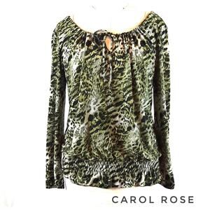 CAROL ROSE Green Animal Print Stretch Knit Top Size M Casual Snakeskin Print