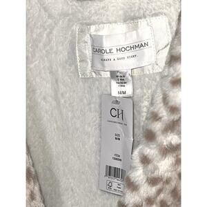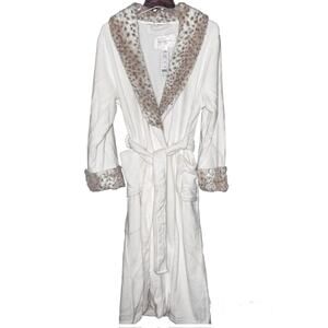 CAROLE HOCHMAN WHITE PLUSH ROBE ANIMAL PRINT TRIM SZ M / MEDIUM NWT SOFT