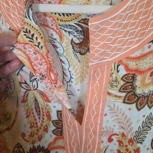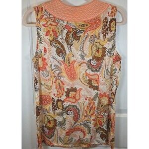 CAROLE LITTLE Peach Paisley Linen Blend Sleeveless Top Sz Medium 70s Retro