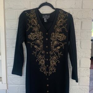 CAROLE Little Vintage Black with Gold Floral Embroidery Sweater Dress