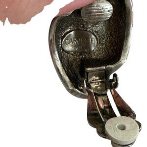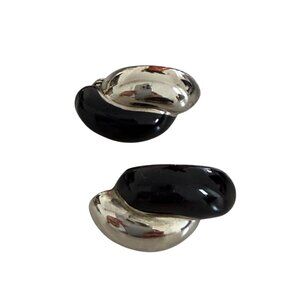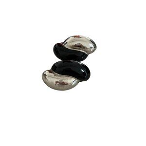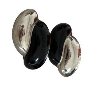 CAROLEE Modernist Clip on Earrings Silver Black Enamel vtg