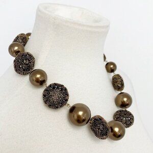 CAROLEE New York faux big pearl floral chunky statement necklace NWT