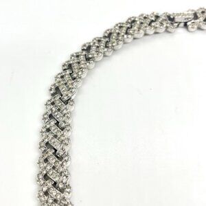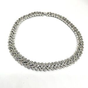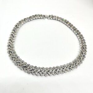 CAROLEE RHINESTONE WOVEN CHOKER NECKLACE SILVER TONE BRIDAL STATEMENT 16.5”