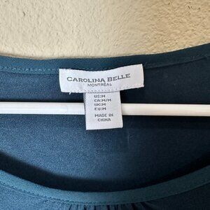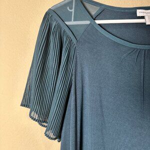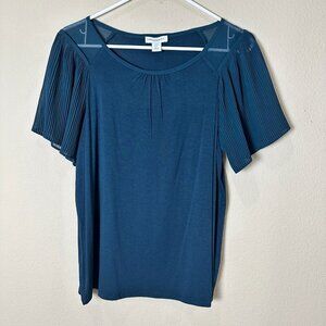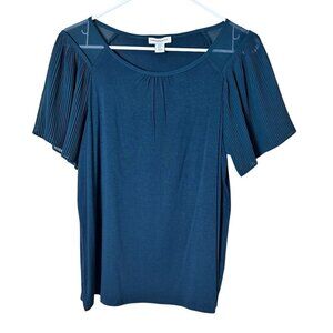 CAROLINA BELLE Sheer Pleated Sleeve Knit T Shirt Top Blouse Size Medium
