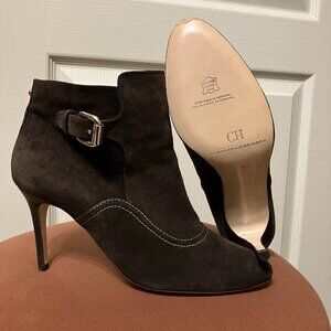CAROLINA HERRERA Boots BROWN Suede ANKLE BOOTS Shearling - Sz 37 (US 6.5) NEW!