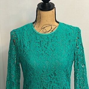 CAROLINA HERRERA GREEN LACE LONG SLEEVE TOP BLOUSE SIZE 6