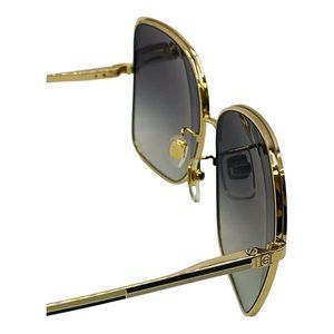 Black/Gold Frame Color, Gradient Grey Lenses, Carolina Herrera Logo on Temple.