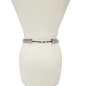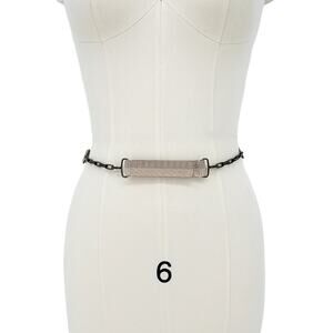 A modern addition to any ensemble, this chain-link belt is punctuated with snakeskin and leather segments crafted with zig-zag topstitching for a sartorial finish.