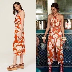 CAROLINA K clothing is sustainably-made by artisan communities from remote regions of India. Crafted in sustainable viscose, this long dress is designed with braided thin straps, and a front slit. The dress features a Blood Orange Peony print.