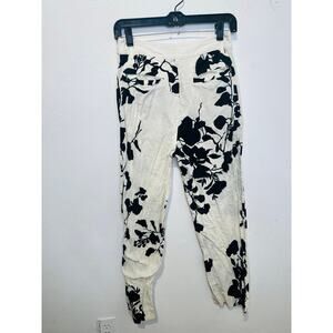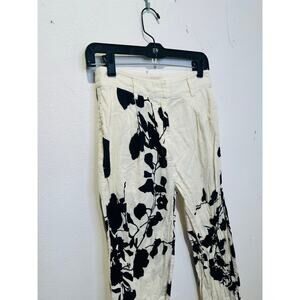 CAROLINA K Off-White Black Floral Abstract Design Zai Button Fly Trousers Size S