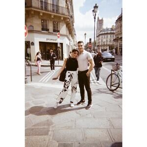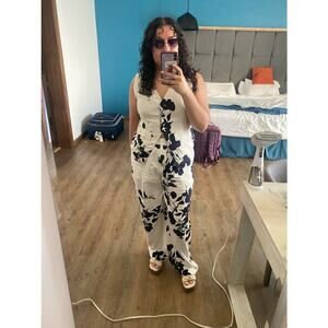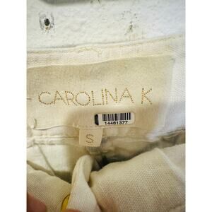 The CAROLINA K Off-White and Black Zai Trousers in Size S feature a striking floral abstract design that blends artistic flair with everyday wearability. Crafted from lightweight fabric, they offer a comfortable fit with a sophisticated drape. The button-fly closure adds a vintage-inspired touch, while the mid-rise waist and straight-leg silhouette create a flattering shape. Perfect for both casual and dressy occasions, these trousers can be styled with simple tops to let the print stand out. A statement-making piece that combines bold pattern work with effortless comfort.