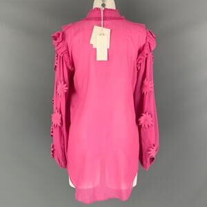 CAROLINA K Size S Pink Cotton Applique Bow Blouse