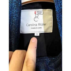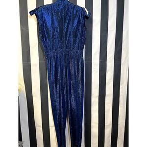 CAROLINA RITZLER Paola Cap-Sleeve Metallic Jumpsuit Blue Size 36 XS