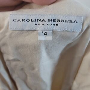 Stunning ivory top from Carolina Herrera New York. 100% silk top, plunge neckline with an attached scarf. Size 4