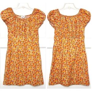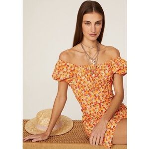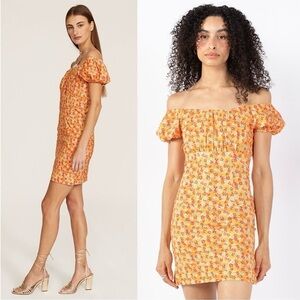 CAROLINE CONSTAS 70s Floral Off Shoulder Puff Short Sleeve Ruched Sheath Dress M