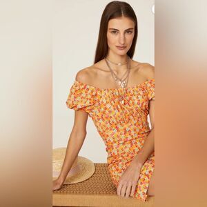 A ruched bodice and puff sleeves turn up the charm on this Caroline Constas mini dress we love-worn with sandals and sneakers alike.