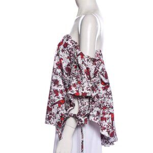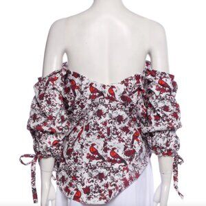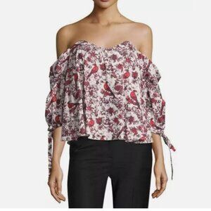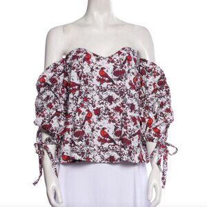 CAROLINE CONSTAS Gabriella Red Bird and Floral Print Off the Shoulder Top Small