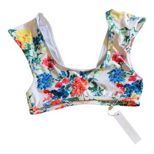 CAROLINE CONSTAS Gale bow-embellished floral-print bikini top NWT