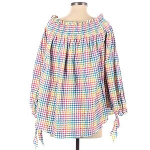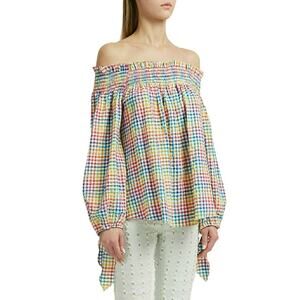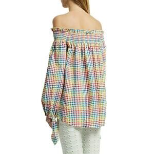 CAROLINE CONSTAS Lou off the shoulder gingham seersucker blouse top in rainbow S