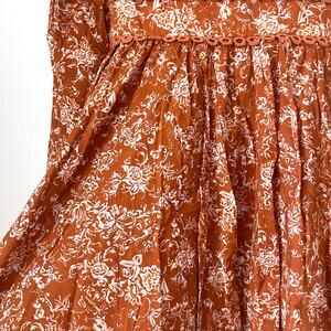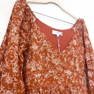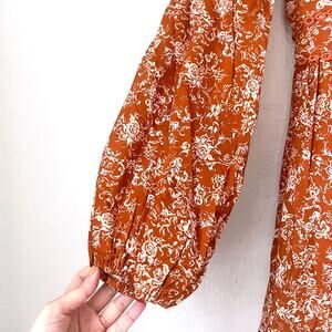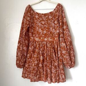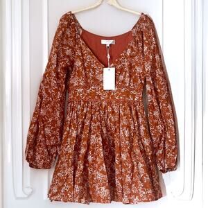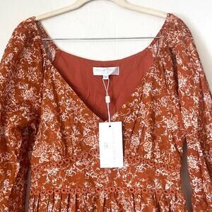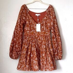 CAROLINE CONSTAS NWT Blakely Floral Cotton Mini Dress in Rust Toile Size S