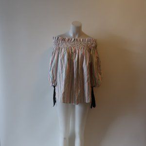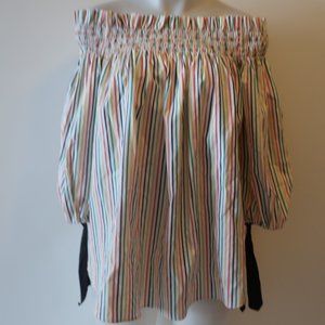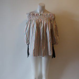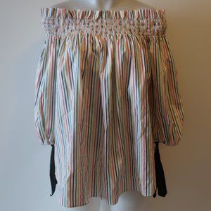 WOMENS CAROLINE CONSTAS MULTICOLOR OFF SHOULDER STRIPED TOP L