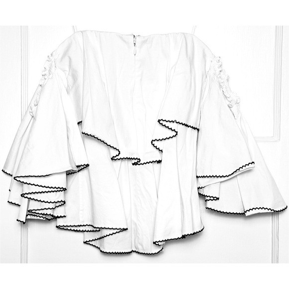 CAROLINE CONSTAS Off Shoulder Tier Ruffle Short Sleeve Strapless Bustier Top XS