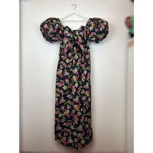 Puff sleeves and a gathered bust lead this dark floral maxi dress by CAROLINE CONSTAS.