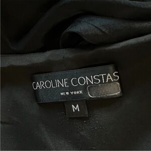 CAROLINE CONSTAS Silk V-Neck Sleeveless Ruffle Hem Ruched Side Slit Maxi Gown M
