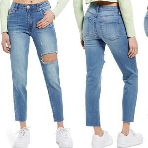 Rips, sanding and whiskering make these high-waisted, straight-leg jeans look like you've been rocking them for years.