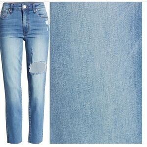 CAROLINE Distressed High Waist Straight Leg Jeans