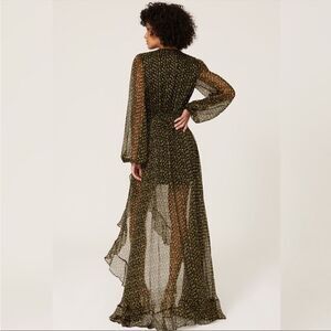 Black chiffon (100% Silk). Gown. V-neck. Long sleeves.