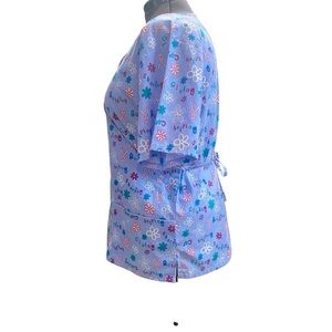 CAROL'S SCRUBS Women's plus size 1X Blue Floral Print Women's Scrub uniform Top