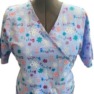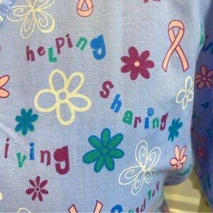 CAROL'S SCRUBS Pink Ribbon Breast Cancer awareness blue with floral novelty print