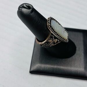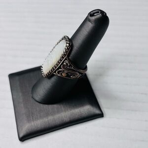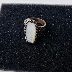 CAROLYN POLLACK 925 silver Carved Mother of Pearl Inlay Ring Size 8