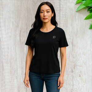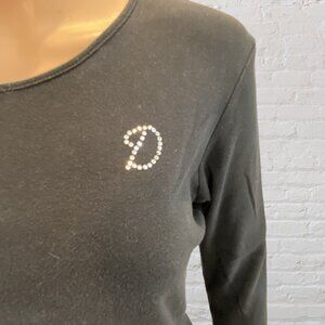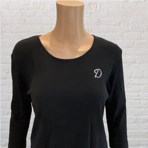 CAROLYN TAYLOR -- Black Top, 3/4 Sleeves, Faux Diamond (Rhinestone) Monogram "D"