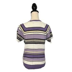 CAROLYN TAYLOR T-Shirt Knitted Top Purple Striped Stretch Women's Size Small