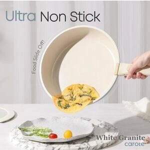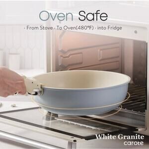 The CAROTE 11-piece cookware set features a detachable handle system that saves up to 70% storage space, rapid and even heat transfer with a durable nonstick granite surface, and compatibility with all stove types including induction. Oven safe and crafted from cadmium, PFOA, and lead-free materials, it offers versatile, health-conscious cooking with easy cleanup and a secure handle design for seamless stove-to-oven transitions.