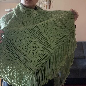 CARPENTER +company Anthropology alpaca shawl green croche fringe