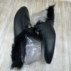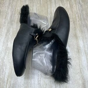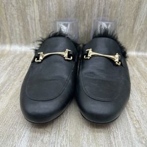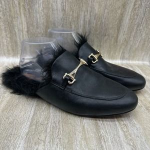 CARRANO SPAIN Leather Mules Womens 10 Faux Fur Luxury Square Heel Slip On Shoes