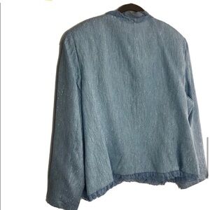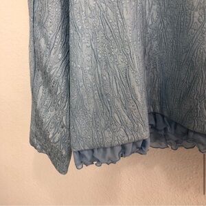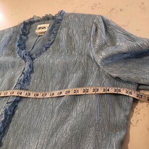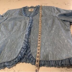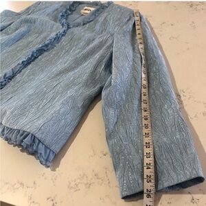 CARRISIMO mother of the bride blue jacket push button closer , ruffle detail V-neck
